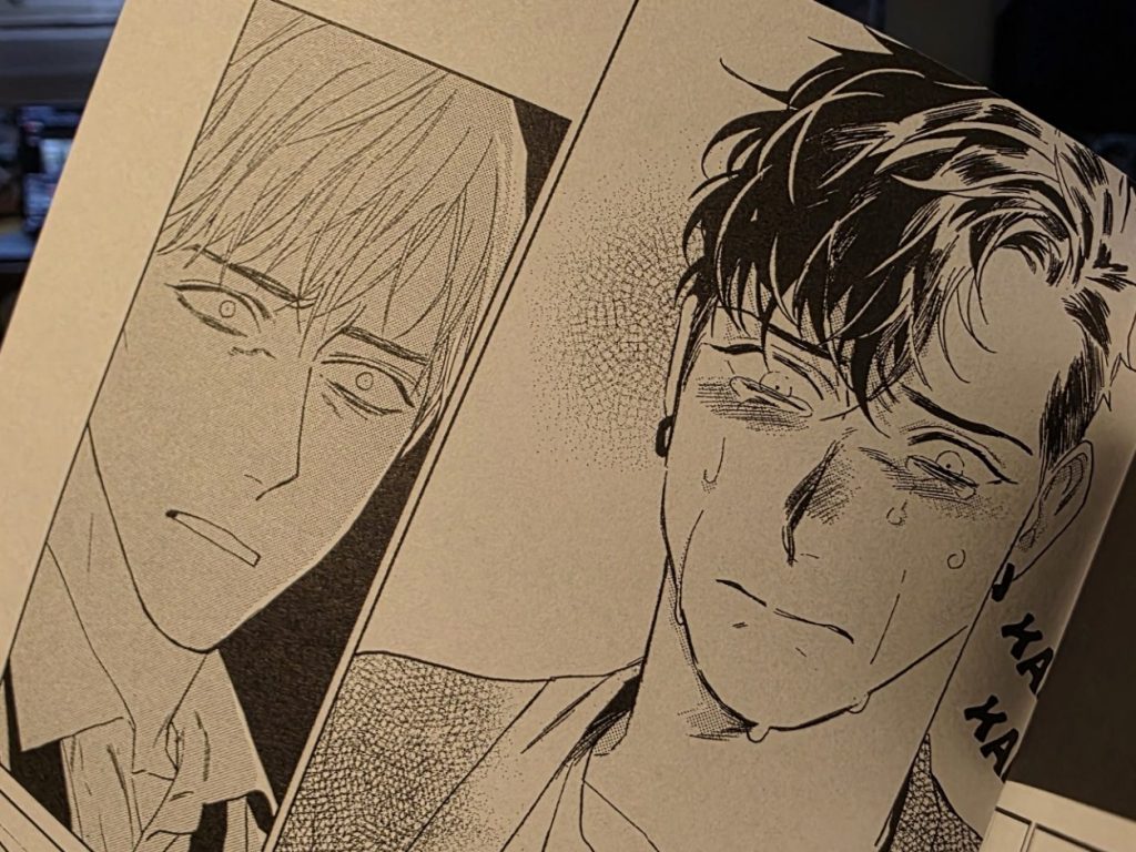 Striking iron while it’s hot, let’s talk about On Doorstep, another one-volume BL manga from CTK. Polish fans (and French!) have been lucky to get this one translated. As soon as I finished reading Midnight Rain, I screamed to myself: “HURRY, WHERE IS THE OTHER ONE ON MY SHELF FROM THIS AUTHOR” as I knew I’d already bought both and couldn’t wait to read another one.